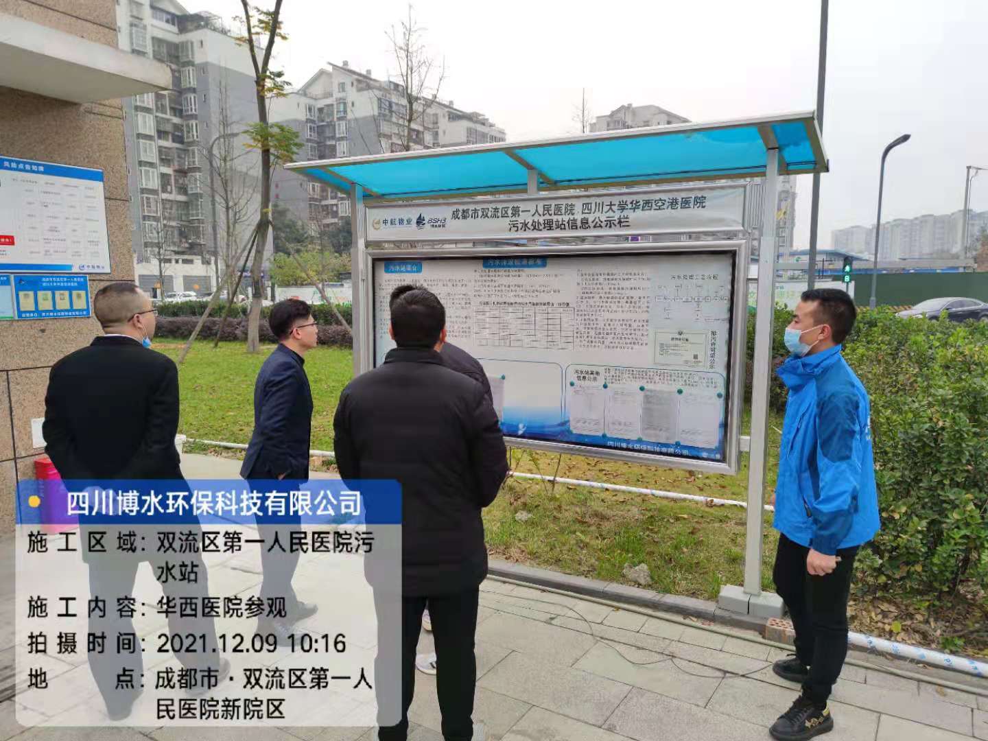 2021年12月9日上午,四川華西醫(yī)院天府院區(qū)領(lǐng)導(dǎo)組及中航物業(yè)相關(guān)領(lǐng)導(dǎo),考察我公司在華西雙流空港醫(yī)院污水處理站運(yùn)營情況。