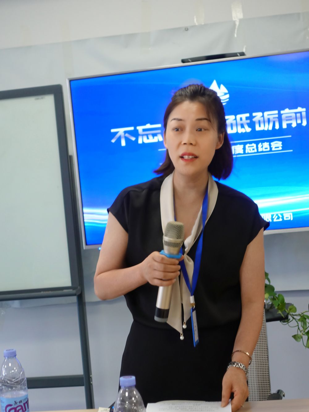 總經辦高總代表四川博水環保向本季度為公司各項工作齊心協力、團結協作和辛勤付出的“博水人”表示衷心的感謝。她用詳細的數據對第二季度以來工作的開展情況、取得的成績、收獲的經驗及存在的不足等進行了全面、客觀、深入的分析總結,對下半年公司的計劃目標充滿信心。