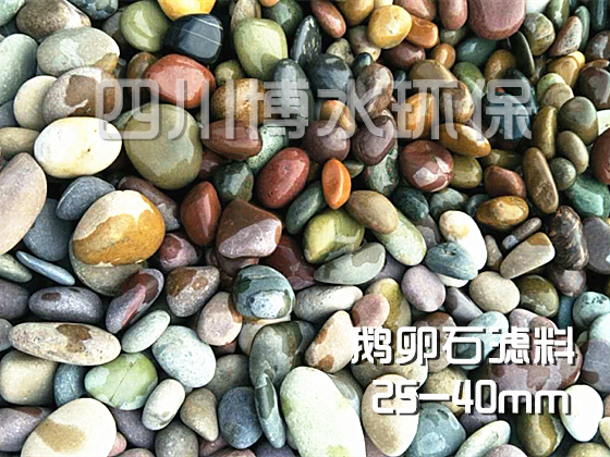 鵝卵石濾料是經過天然河流采挖、篩選、水選而成,球狀形純白色和雜色,加工有機制的卵石及石英礫石。