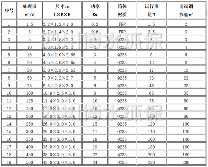 ① 涉及高原或冰凍地域,請選擇將設備埋置于冰凍線以下,盡量滿足冬季污水水源進入處理系統水溫T≥18℃,以確保冬季細菌生存效果; ② 以上選型表數值僅適用于普通生活污水,排放標準≥污水綜合排放標準GB8978-1996三級;